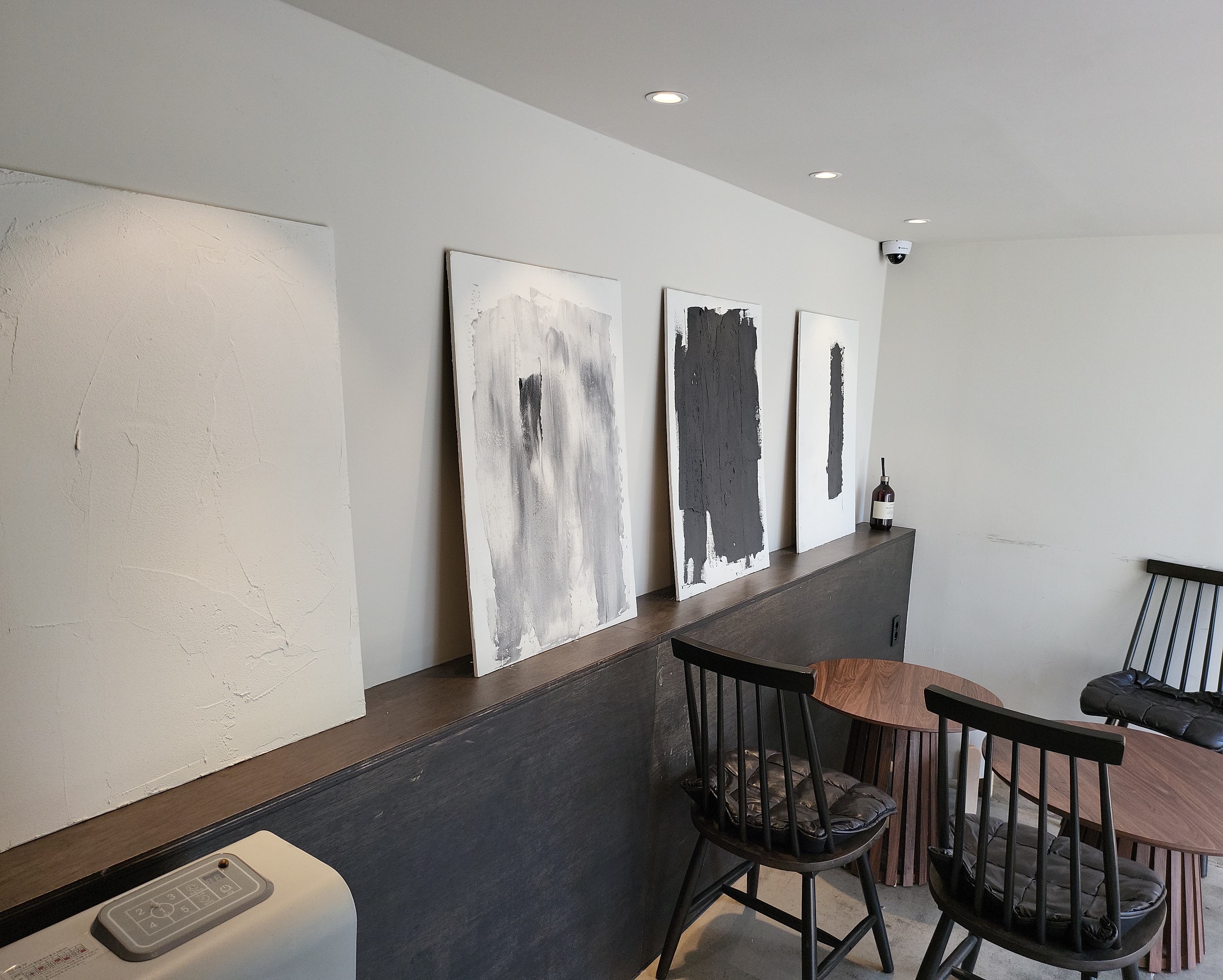 카페 내부에 들어서자마자 느껴지는 건 미술관에 들어온 듯한 분위기였습니다. 화이트 톤의 벽면, 군더더기 없는 가구 배치, 곳곳에 놓인 아트워크까지. 전시공간과 카페가 결합된 듯한 분위기로, 공간 자체에서 힐링을 느낄 수 있었습니다.