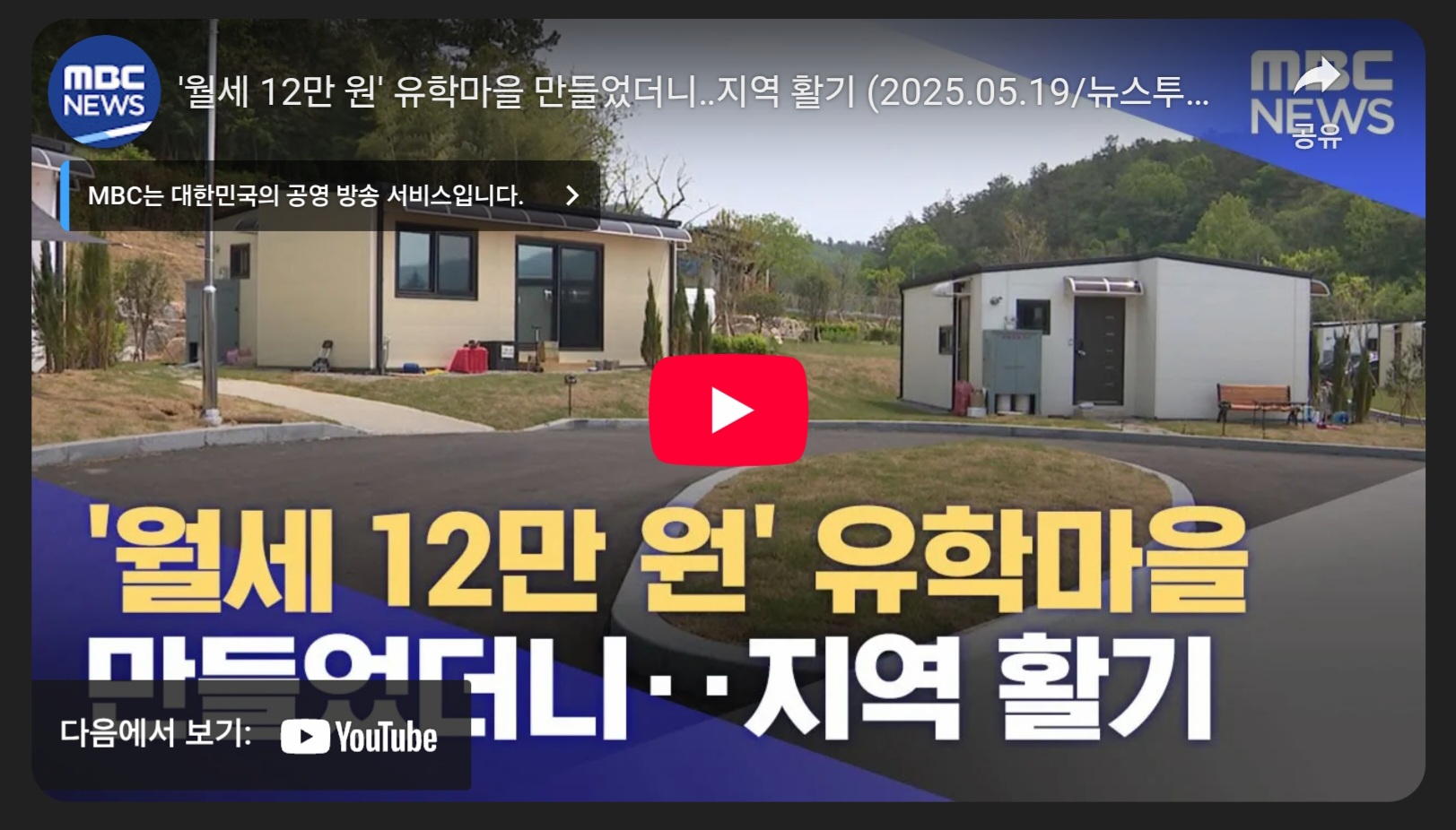 '월세 12만 원' 유학마을 만들었더니‥지역 활기 (2025.05.19/뉴스투데이/MBC) - https://youtube.com/watch?v=H7ypDAWMCbI&si=-Uh5cr5kvlzPEZHw