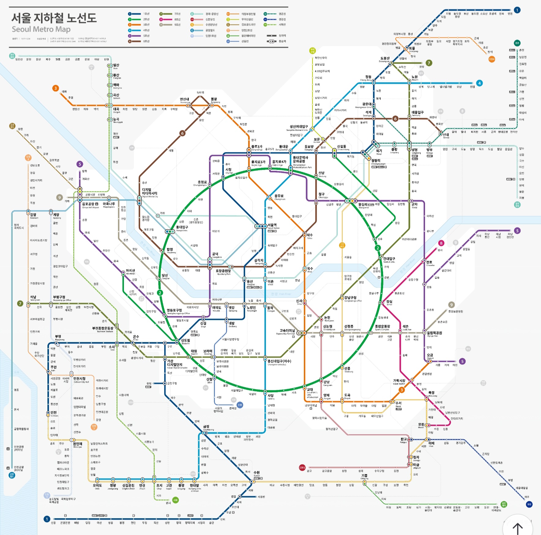 □ 서울시는 관광객에게 현 위치를 방위로 이해할 수 있도록 도심과 외곽 지역 경계선과 인천공항, 바다, 강 등 주요 지리 정보를 노선도에 표현했습니다. 내년에는 랜드마크 아이콘을 노선도에 적용하여 서울의 명소도 홍보할 예정입니다.