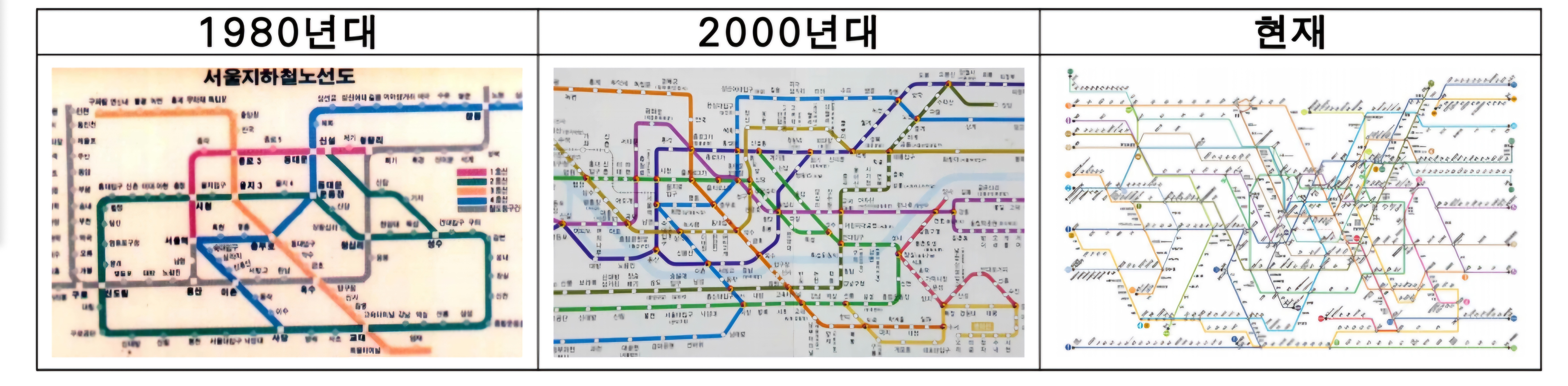 □ 서울시의 지하철 노선도가 40년 만에 바뀝니다. 지하철 노선이 1980년대 4개 노선(106개 역)에서 2000년대 9개 노선(338개 역)을 거쳐 현재 23개 노선(624개 역)으로 계속 증가하고 있지만, 노선도는 1980년대의 형태를 유지한 채 노선만 추가되어 다양한 형태로 혼용되고 있어 추가 확장 노선의 적용이 어려운 상황입니다.