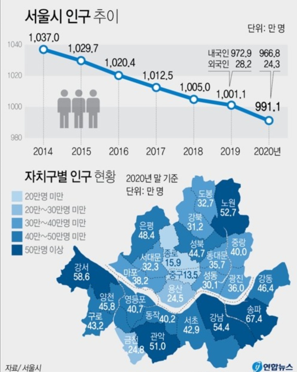 → 서울시 도시계획본부의 관련 보고서, 주민등록 변화 데이터 참고.