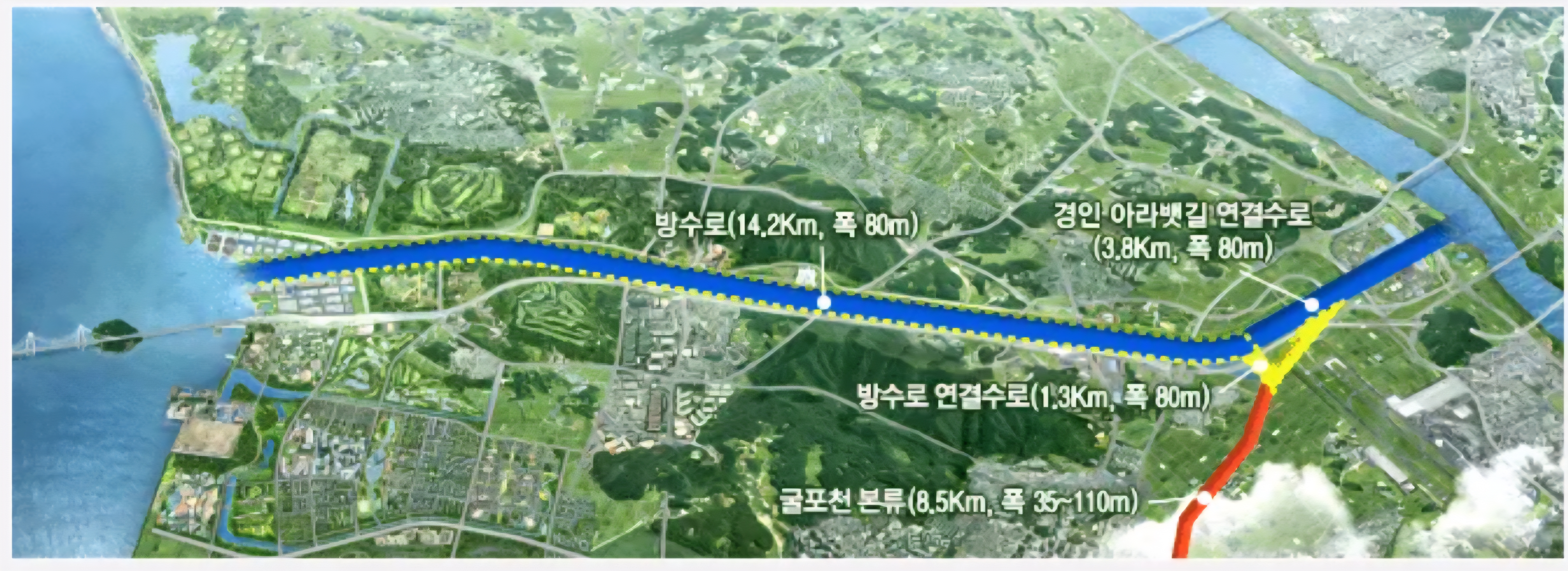 2011년 개통 이후, 단순한 수로가 아닌 친환경 수변 관광지로 조성되어, 시민들의 산책로, 자전거 도로, 문화 예술 공간, 유람선 관광까지 아우르는 복합 여가 공간으로 발전했습니다.