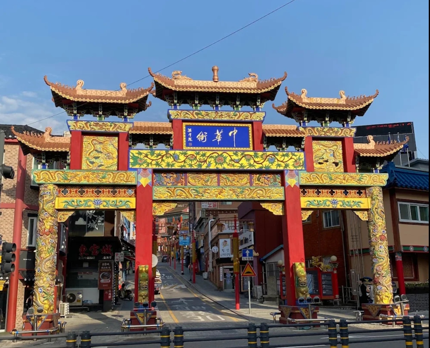 입구에 세워진 화려한 중국식 문은 차이나타운의 상징입니다. 붉은 기둥과 금색 장식이 인상적이며, 여기서 인증샷은 필수!