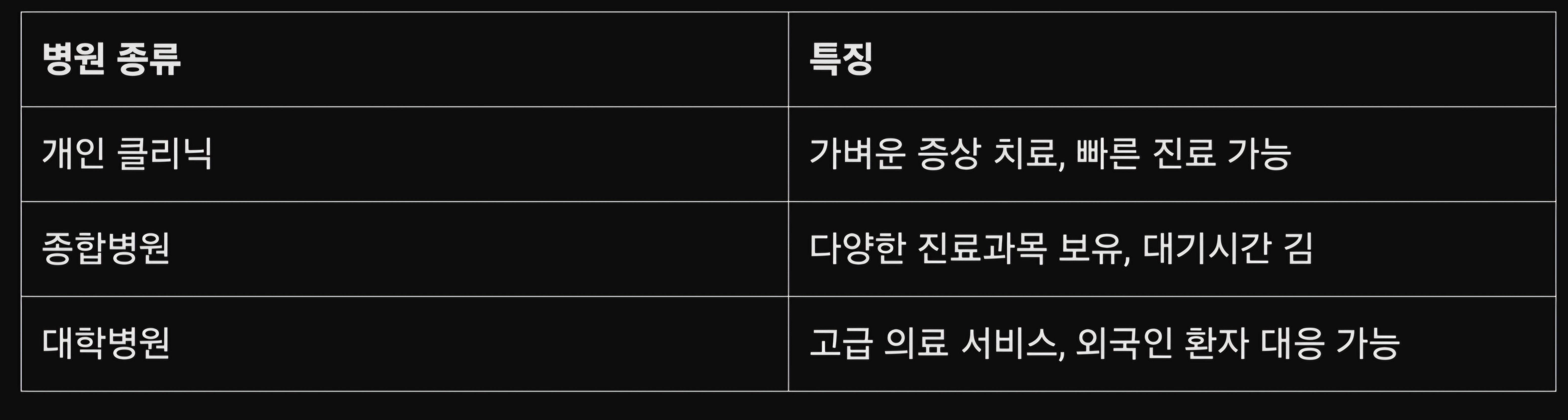 병원 종류 및 특징