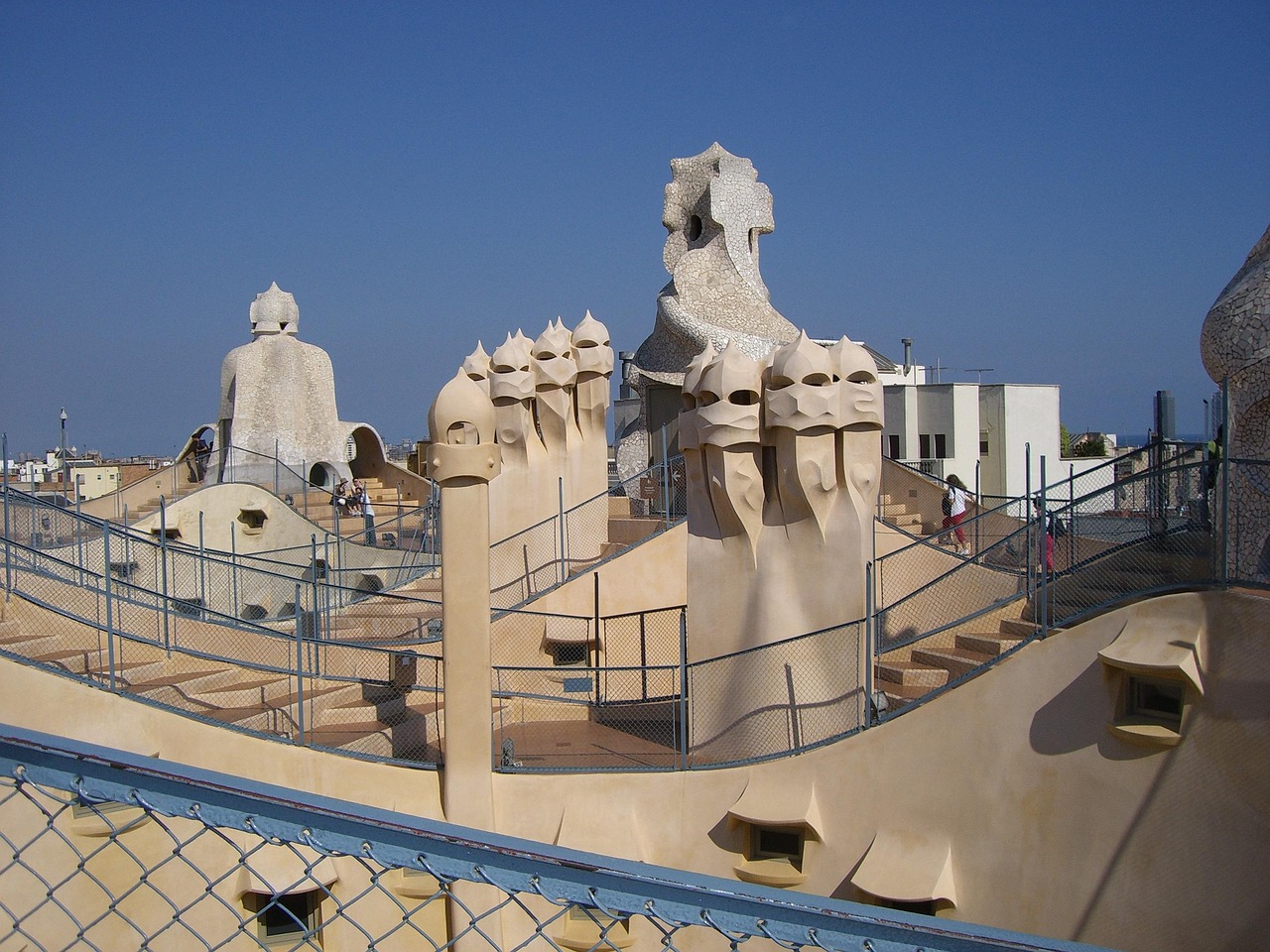 카사 밀라(Casa Milà), 일명 ‘라 페드레라(La Pedrera, 채석장)’는 직선이 하나도 없는 물결 같은 외벽이 특징이며, 철제 발코니 장식과 독특한 옥상이 돋보입니다.