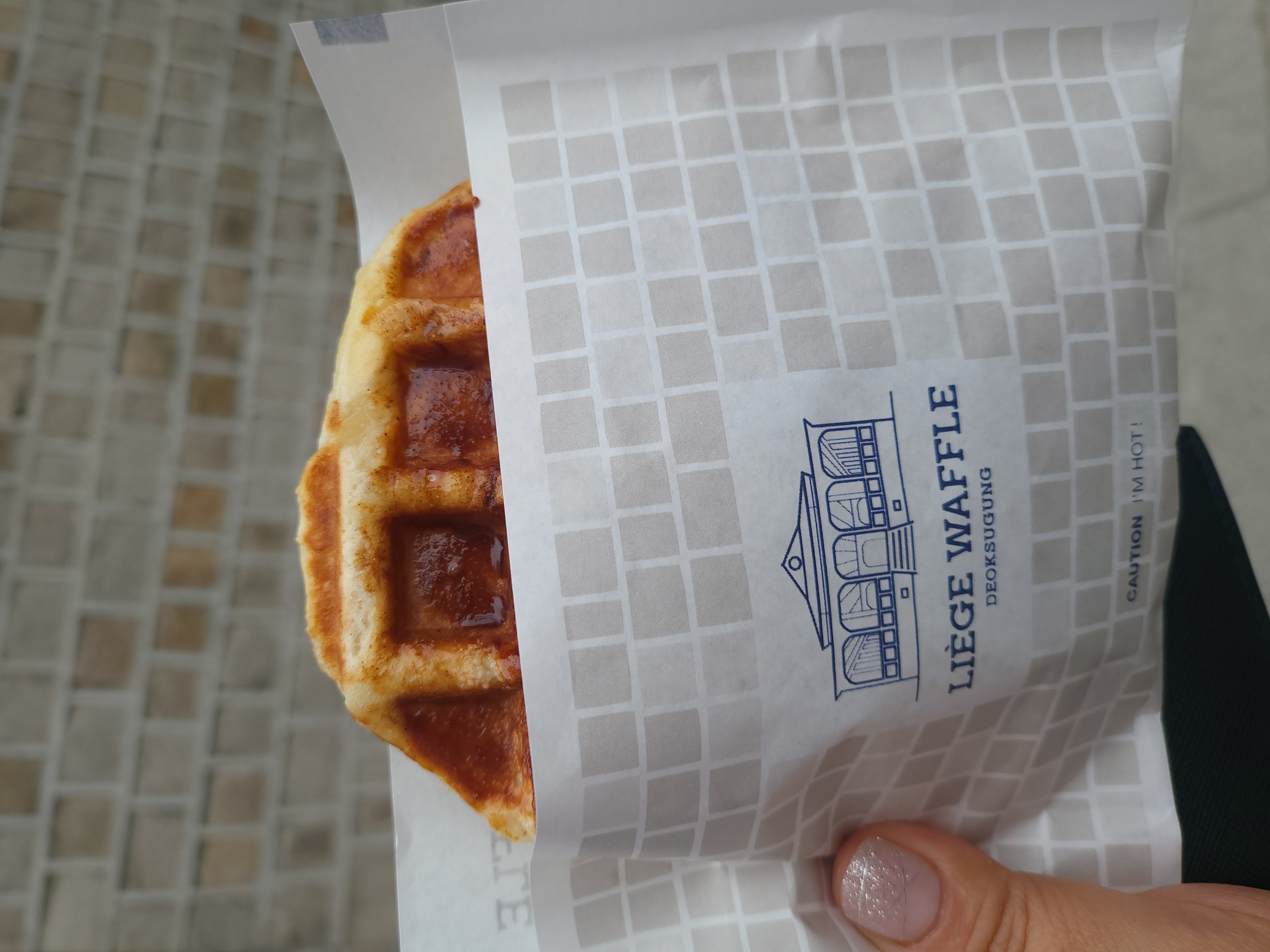 로투스, 인절미, 누텔라 와플 종류가 있으며, 달콤하면서도 한국적인 느낌이 나는 디저트 경험 가능.