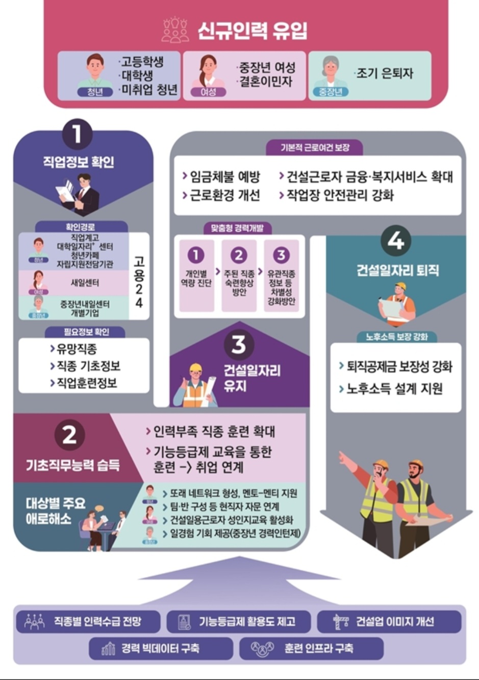 "건설 보조", "현장 안전감시", "건설 식당 보조" 등 키워드로 검색