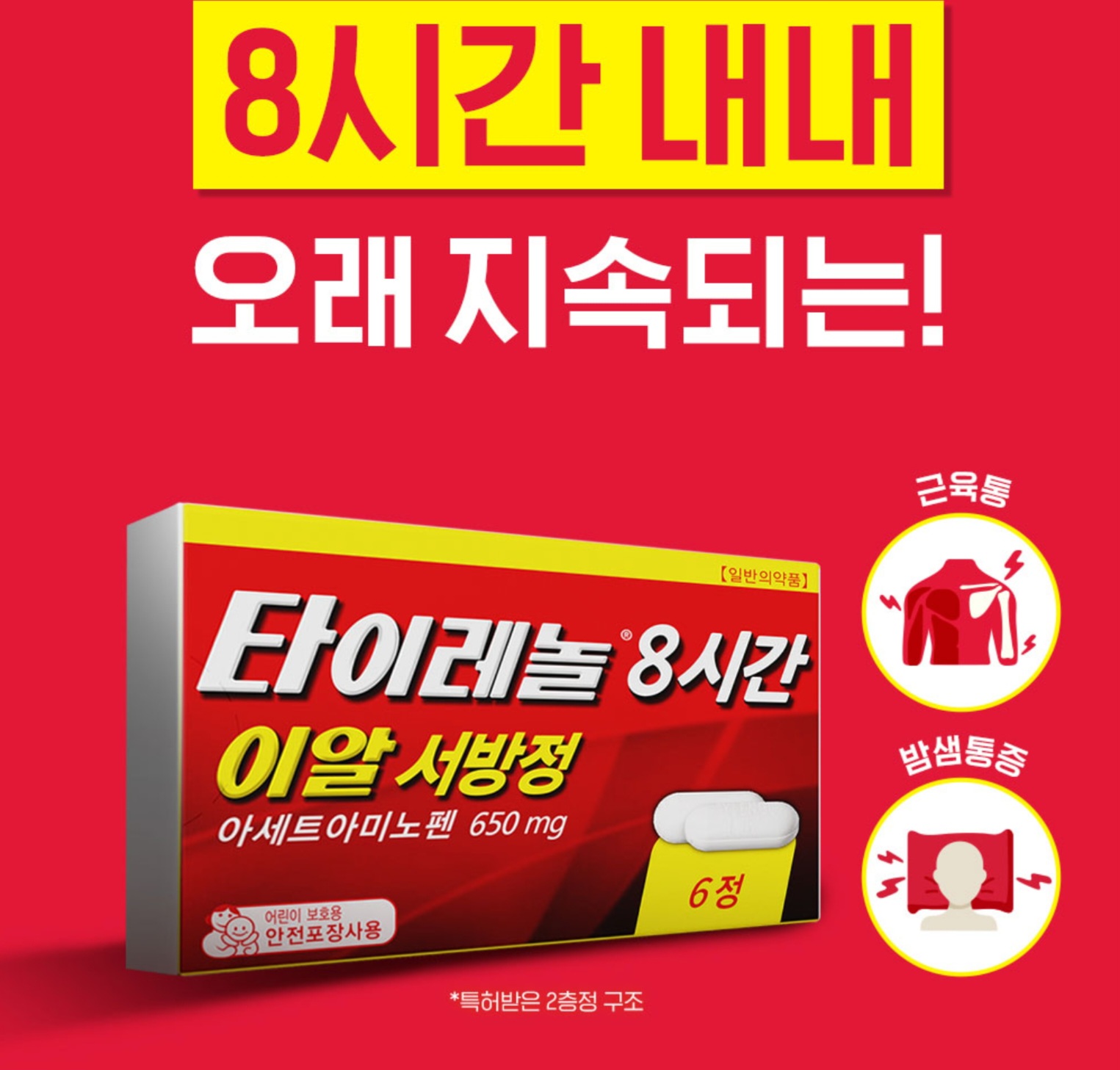 일반 타이레놀보다 복용 간격이 길어, 하루 3번 이하 복용