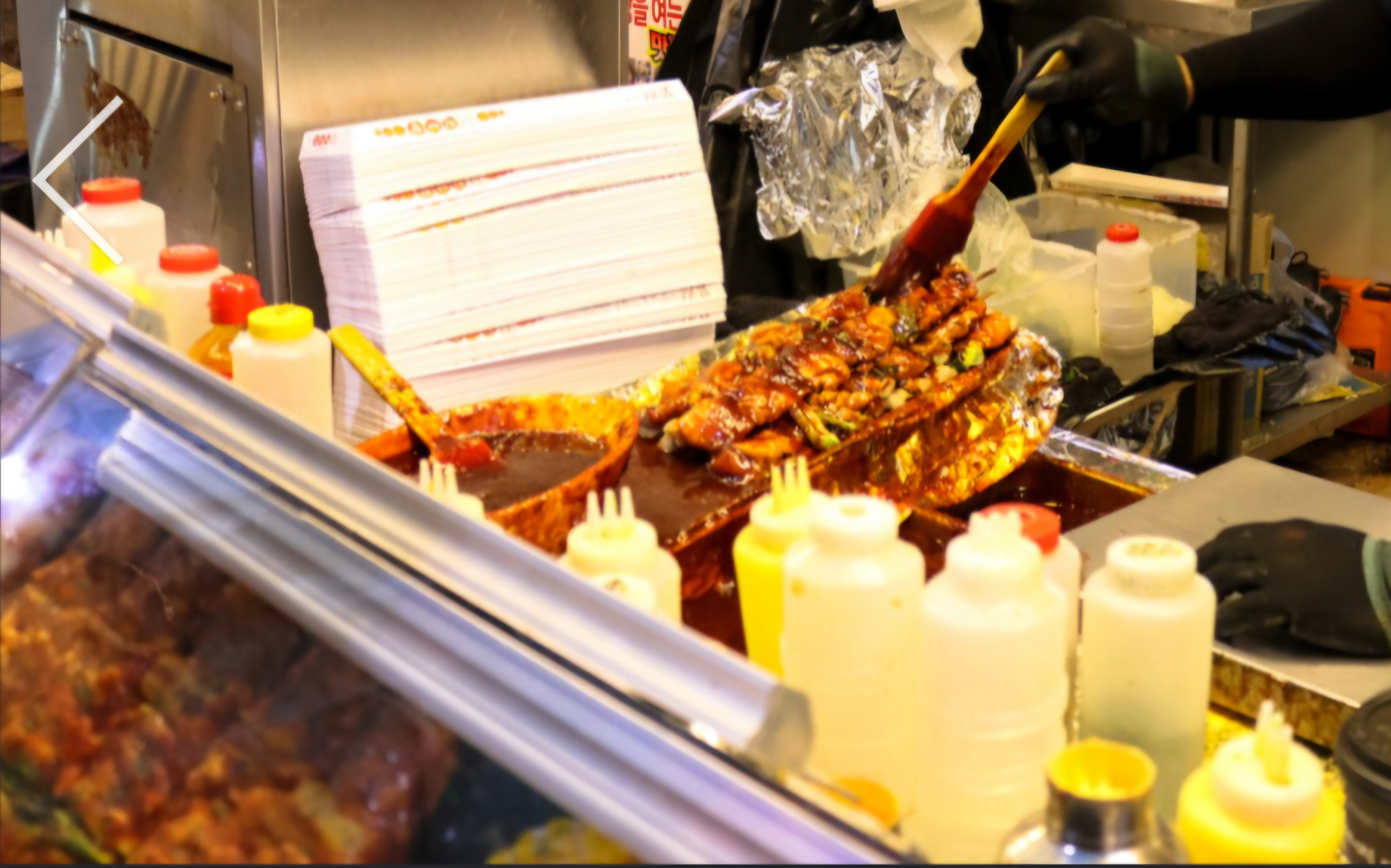 닭강정: 바삭하게 튀긴 닭에 매콤달콤한 양념을 묻힌 닭강정도 인기 먹거리입니다. 포장해가기에도 좋아 시장 방문 기념 간식으로 적합합니다.