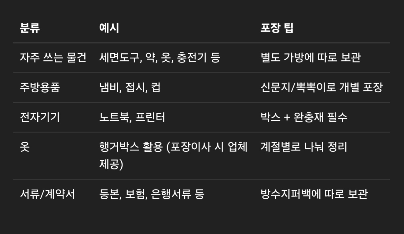 🛠 팁: 포장이사 시 꼭 확인할 것