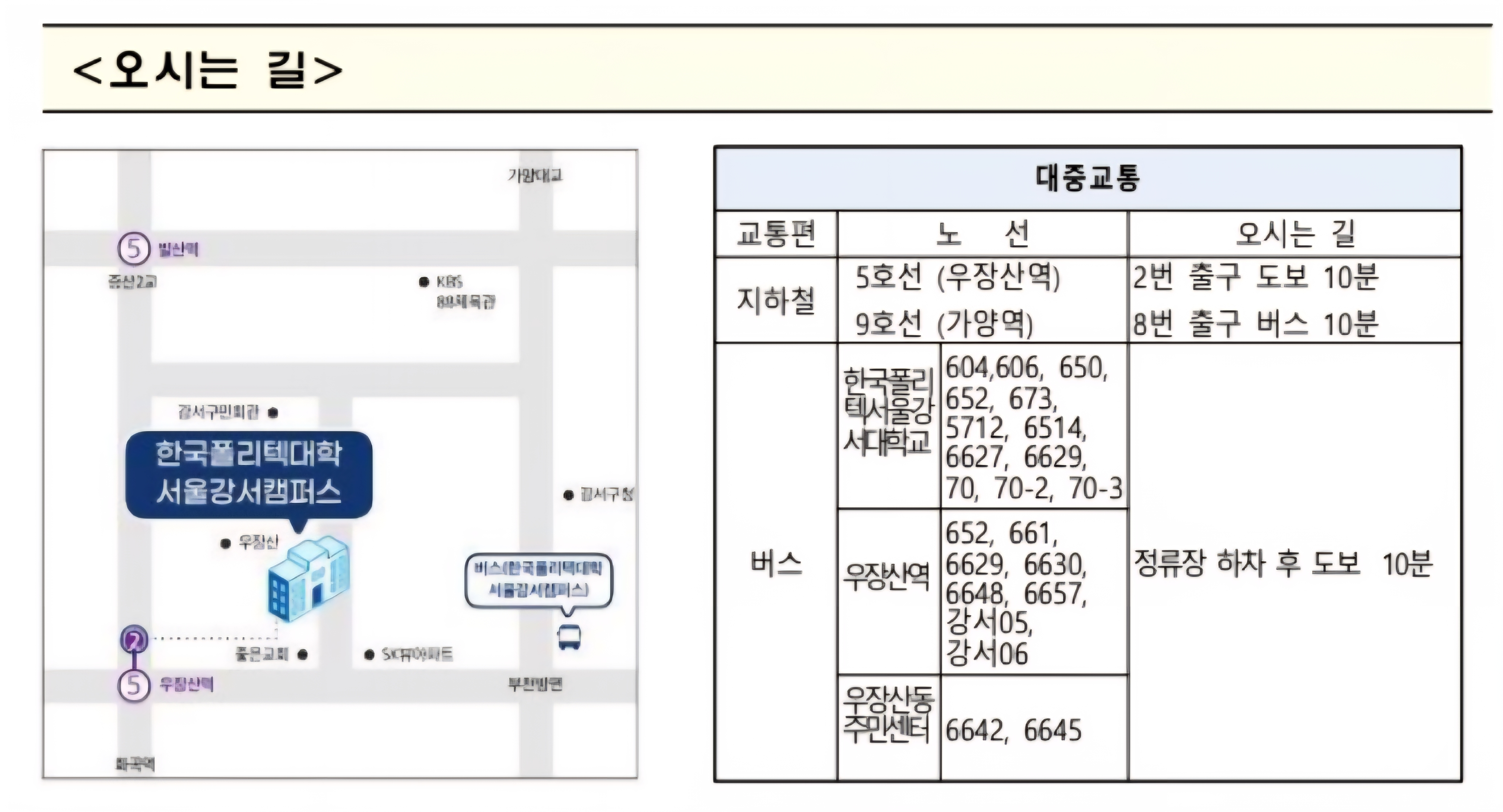 서울강서캠퍼스: 서울 강서구 우장산로 - 5호선 우장산역 도보 15분