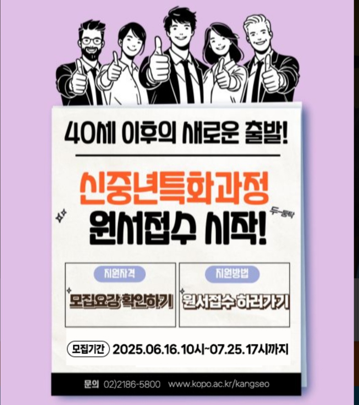대상: 만 40세 이상, 학력 제한 없음, 미취업자 우선