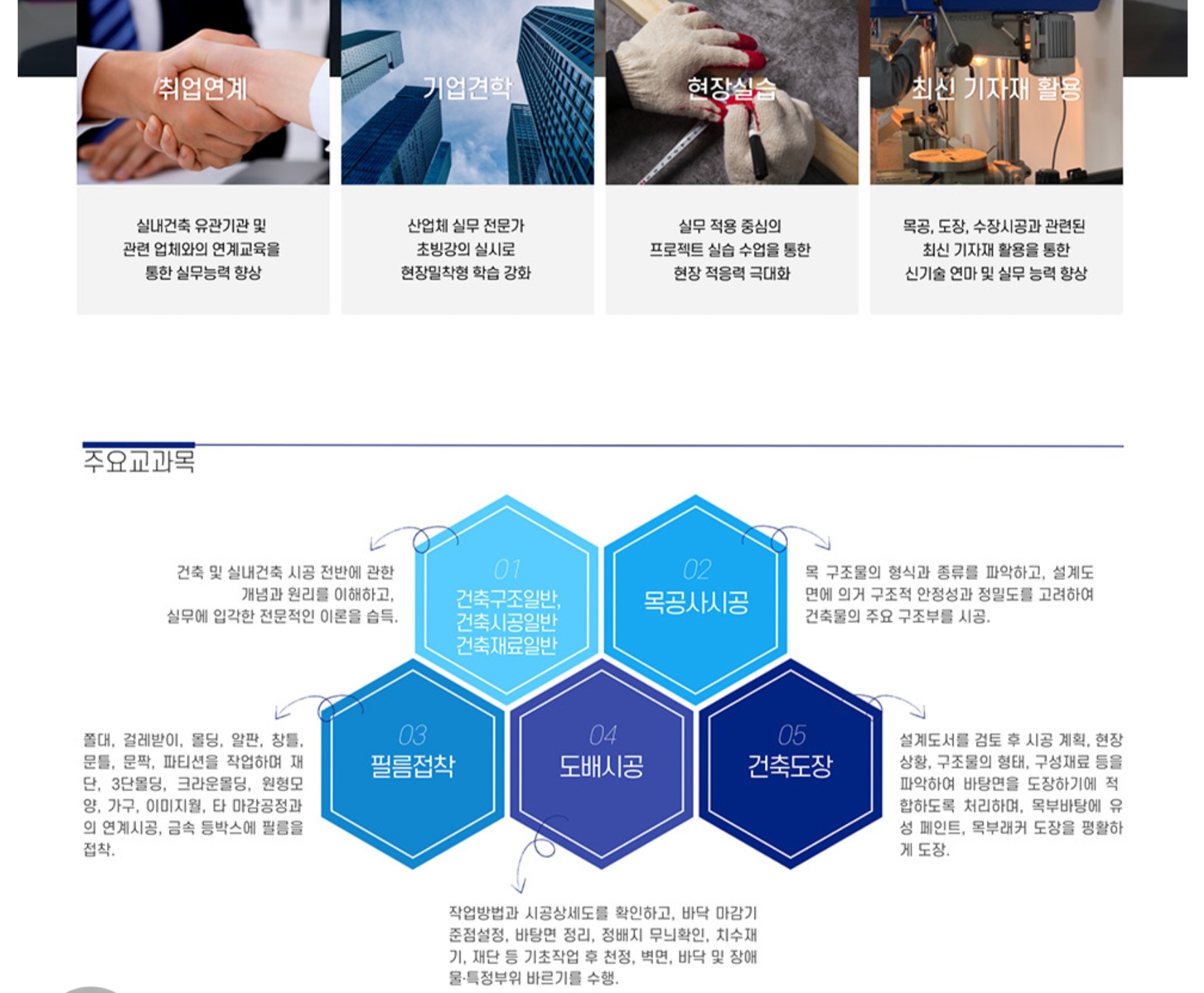 내용: 설계·디지털 도구·재료·시공 실무 + 프로젝트 교육