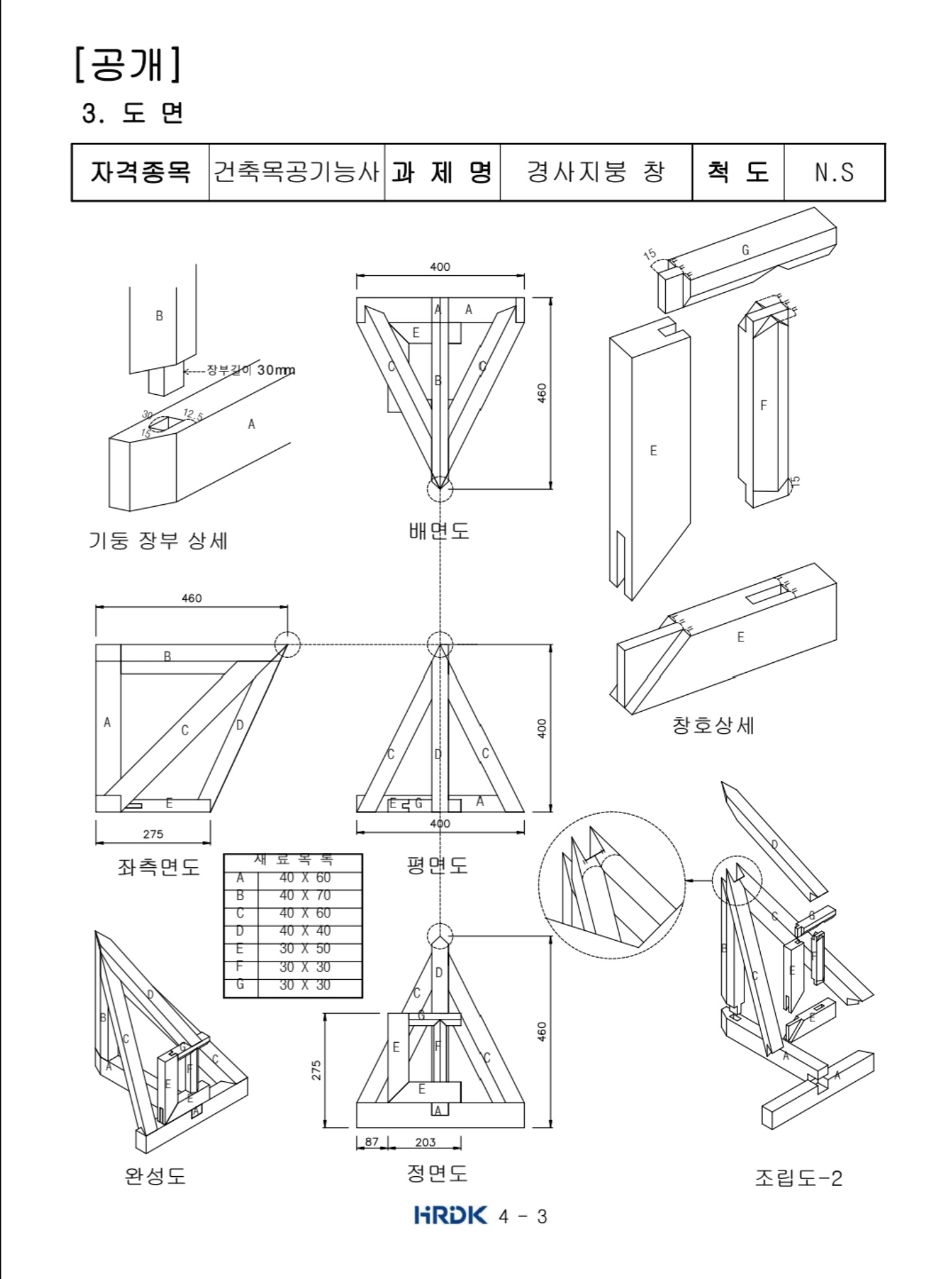 실기시험은 주어진 시간 내에 제시된 목공 구조물을 제작하는 방식입니다. 주로 기본 짜맞춤 기법, 도면 해석 및 제작, 정확한 치수 측정과 가공 능력을 평가합니다.
