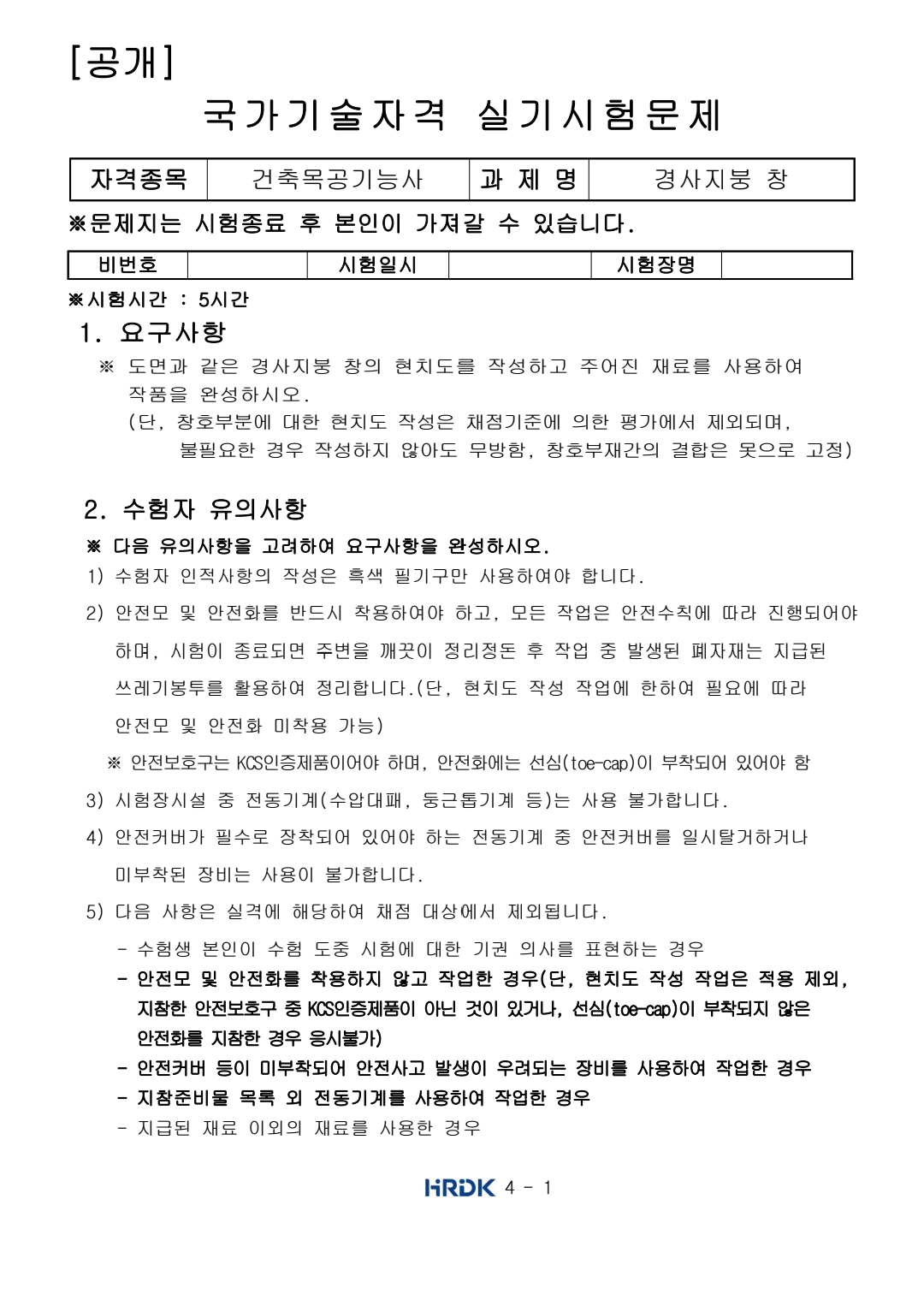 안전사고 방지를 위해 감독관 지시에 따라야 하며, 부적절한 복장은 감점 또는 퇴실 사유가 됩니다.