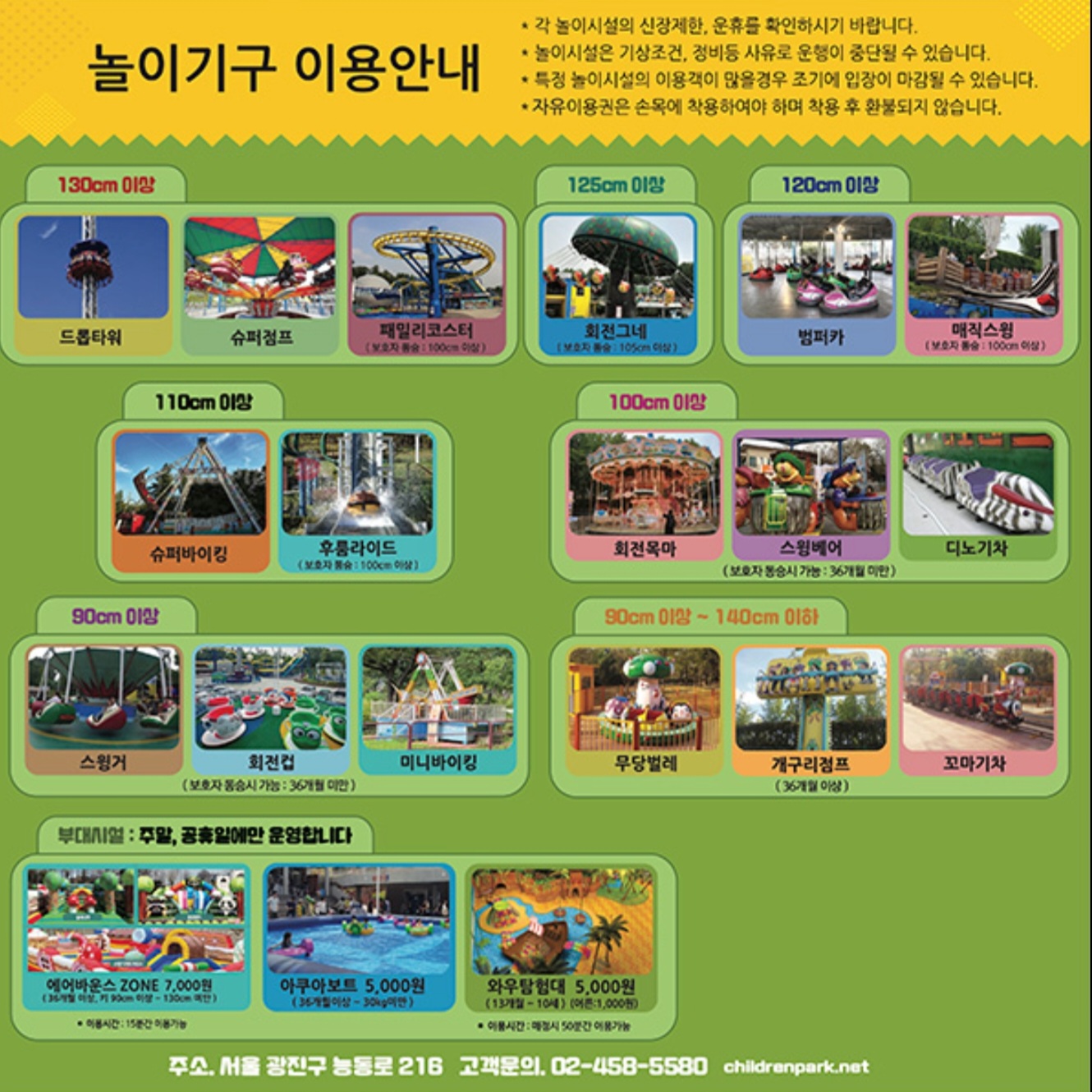 놀이기구: 개별 요금 부과 (3,000~5,000원)