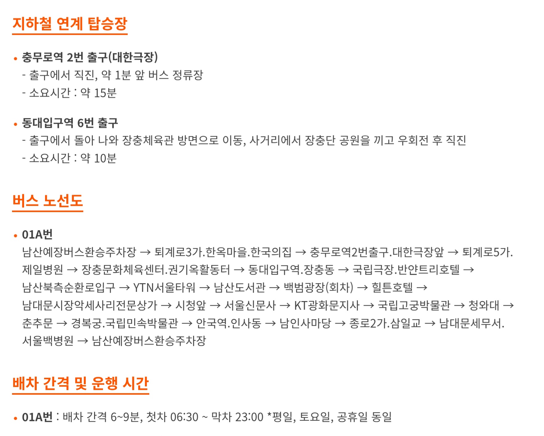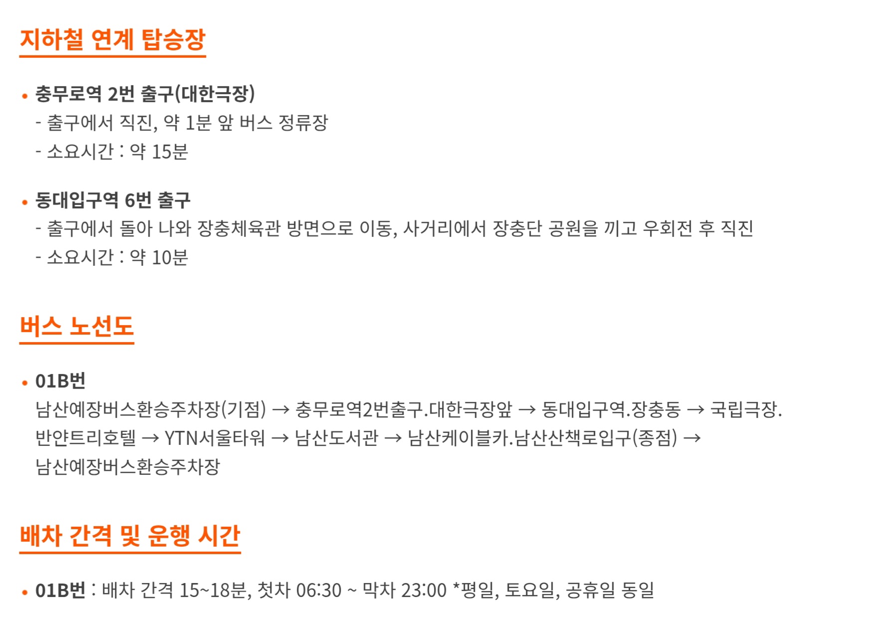 이용 방법: 충무로역(3,4호선), 동대입구역(3호선) 등에서 탑승 가능
